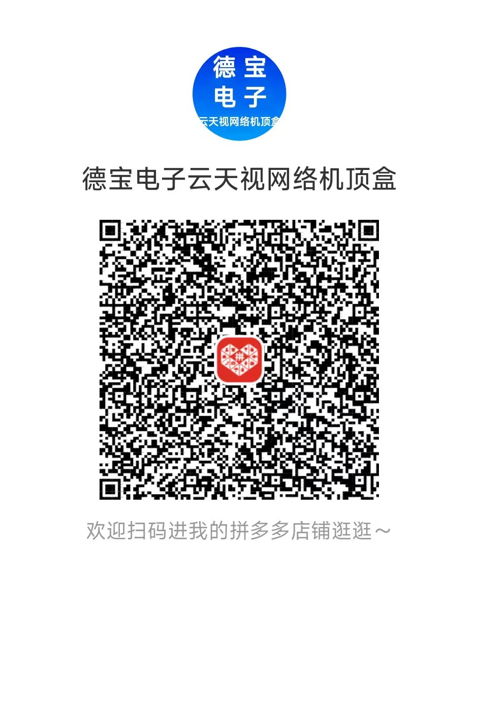 | 德宝电子云天视网络机顶盒拼多多店 | 扫一扫关注我们抖音号 |